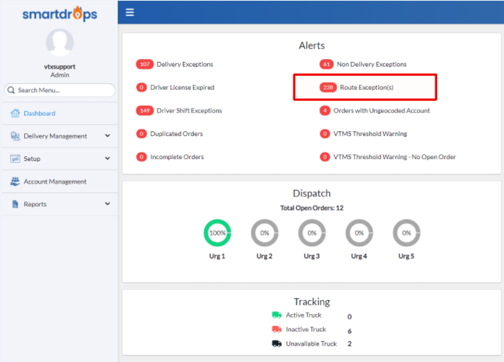 Click on Delivery Exceptions to navigate to Order Exceptions